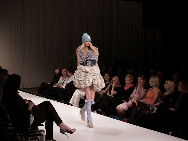 the first show of the second day didn`t impress me at all. the designers presenting really weren`t my cup of tea. Urša Drofenik has her signature design with corsets and lots of bling, the princess dresses that are made for miss universe competitions. no real fashion person would ever wear that. i liked a few pieces from Simona Lampe but as a collection it didn`t make an impact. it`s easy forgettable. Maja Štamol suprised me a bit with the prints and a few well made dresses but i disliked the sylings with the jewellry. Ymócion was colorful as always. the question that poped into my head while looking at this collection was: where do the designers get such horrible materials. really? and the shapes are so dated. it`s like dressing a 5 year old. The last show was by Miro Mišljen and anyone who knows him would expect a wacky design. and it was. even the music was wacky. i liked the styling with the caps thow.